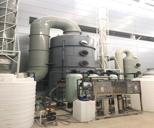 当废气进入酸碱废气塔时,中和液通过喷嘴喷出,与废气中的酸性或碱性物质发生中和反应,生成中性物质和水。同时,填料上的中和液会与废气中的其他污染物发生吸附、吸收、反应等,进一步去除废气中的有害物质。最后,排风系统将处理后的废气排出,同时补充适量的新鲜空气进入塔内,以保证中和反应的进行和废气的有效去除。总之,酸碱废气塔是一种有效的废气处理方法,适用于处理含有酸性或碱性物质的废气。其原理是通过酸碱中和反应,将废气中的酸性或碱性物质转化为中性物质,从而消除其对环境的污染。